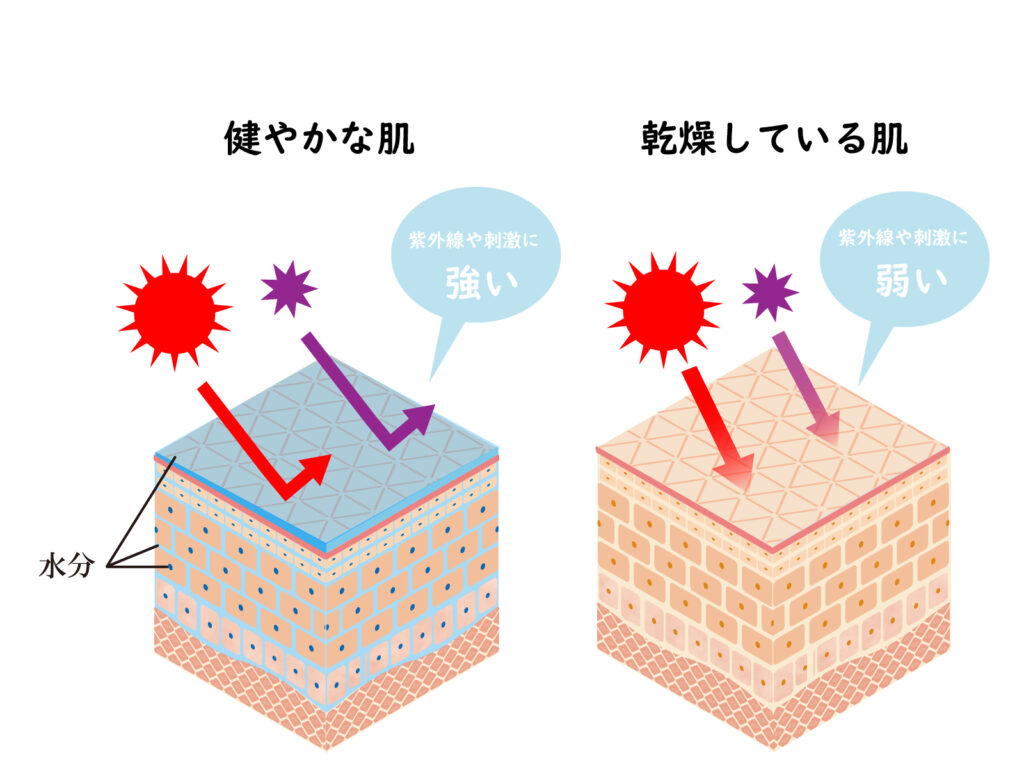 角質層の水分が不足すると、皮膚の表面にすき間ができ、外部刺激に弱い状態になります。